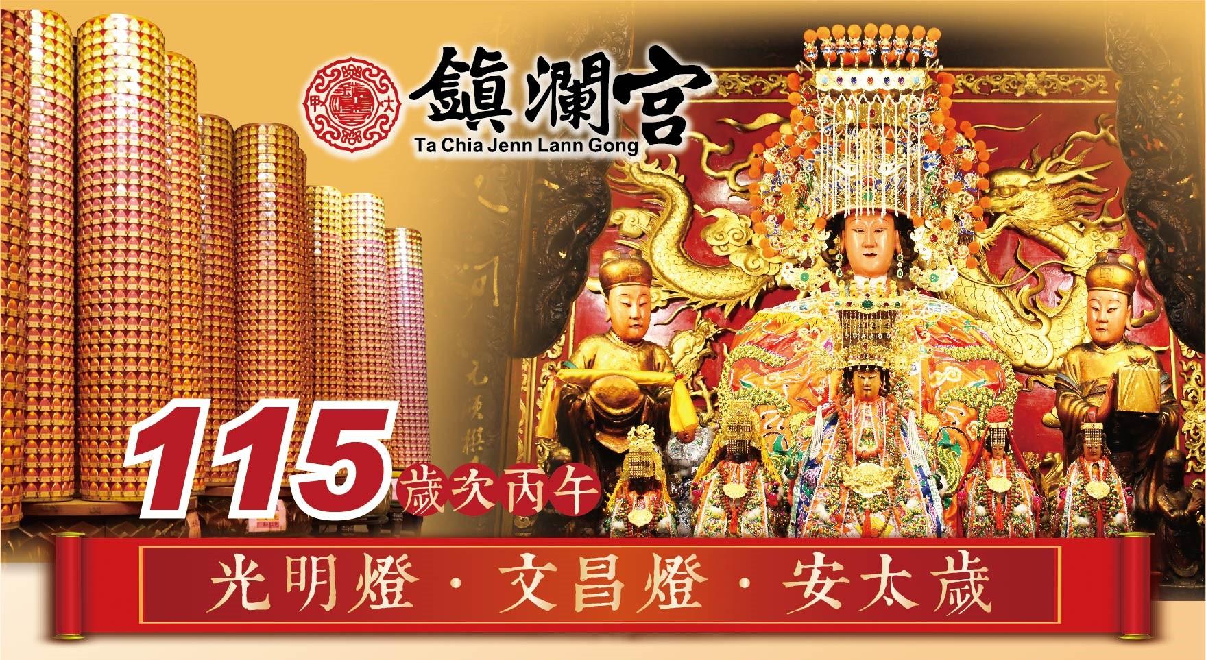 大甲鎮瀾宮 歲次丙午年 光明燈、安太歲【元旦】1月1日 於 電腦室 開始辦理登記 將於元宵節當天起斗點燈、安奉太歲 並於每個月農曆初一、十五誦經讀疏 消災祈福 光明燈 光耀前程 好運燦爛 心想事成 文昌燈 星君加持 有如神助 金榜題名 安太歲 流年...